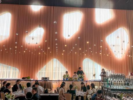 ゆったりと重厚な9mもの高さの天井を誇るダイニングフロア。