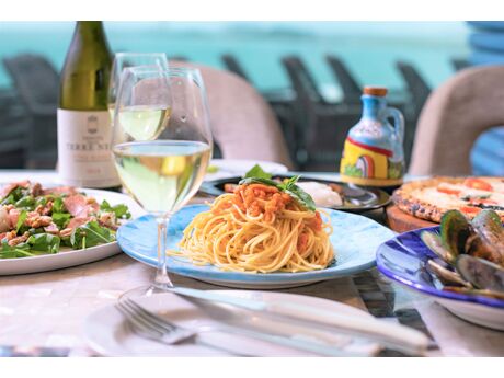 どこまでも続く透明な海に囲まれたイタリアンレストラン。