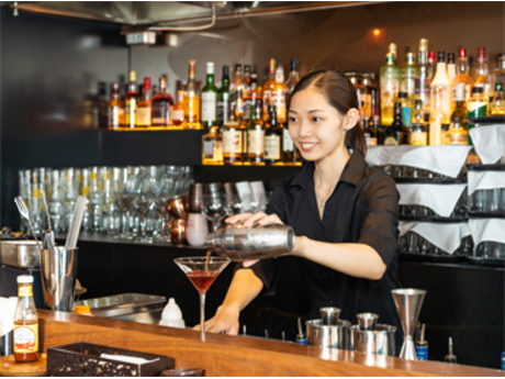 バーカウンター内での接客、季節のフルーツカクテルや世界各国のお酒を使用したカクテル作りをお願いします。