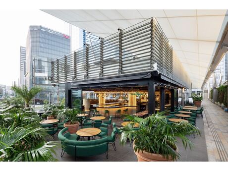 八重洲中央口を抜け、2階への上がると東京駅の中とは思えないような緑豊かなテラスが広がります。