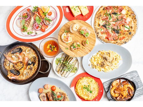 自家製のピザやこだわりのパスタ、スペインのパエリアまで、バリエーション豊かなメニューを開放感抜群のあるダイニングで楽しめるレストラン。